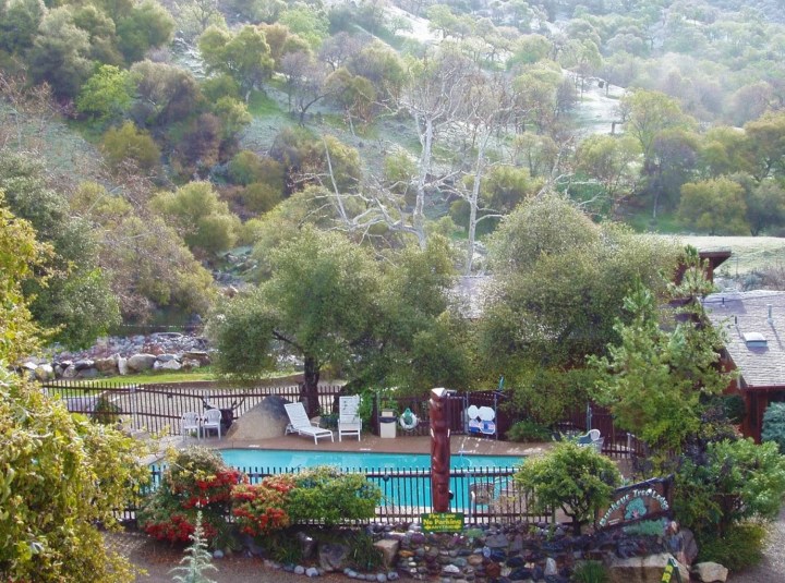 The Buckeye Tree Lodge is set along the banks of the Kaweah River, with eleven rooms facing the river, the views and sounds of the river from each room, patio and balcony are simply spectacular. The beautiful grounds include a large grassy lawn and picnic area overlooking the river with huge native sycamore trees to provide shade during warm summer afternoons. All rooms also feature comfortable beds, cable television, a microwave oven, and mini refrigerator. The clean rooms have ceiling fans, windows that you can open, as well as air conditioning and heat. One of the rooms features a two burner stove and toaster, a kitchen sink, as well as dishes, silverware and pots and pans to make your own meals. There is one large cabin attached to the main building called the River House, which includes three bedrooms, high ceilings and an open floor layout. It has a full kitchen, washer and dryer, and two private balconies. It also has a private BBQ. The River House can hold up to ten people. Additional cabins, located across the road from the motel, include nine private chalet, cottage and cabin accommodations tucked into 1.3 acres of native oak trees, grasses and wildflowers that border Sequoia National Park. The comfortable cabin accommodations sleep from 2 to 10 people and range from small studios to spacious 3 bedroom, 2 bath units with full kitchens and living rooms with big screen LCD HDTV’s. The nicest restaurant in town is located right next door so you don’t have to cook if you don’t want to.