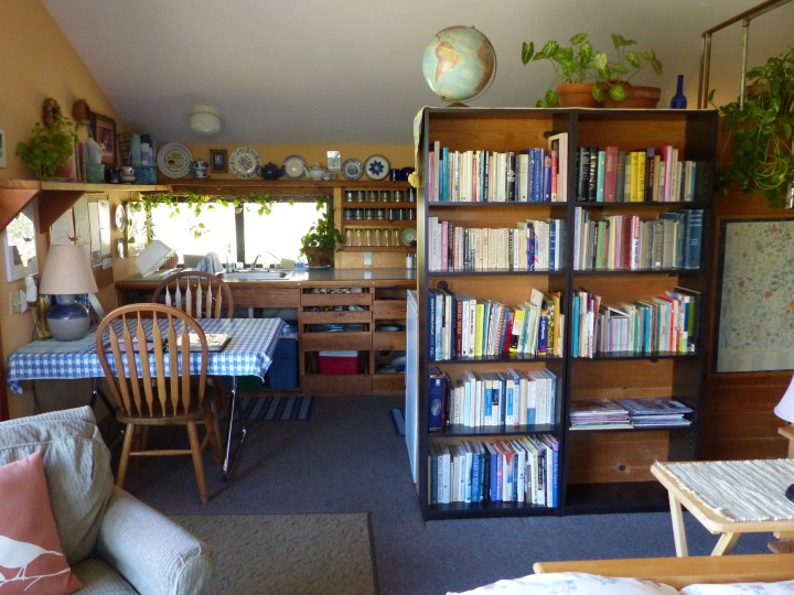The cottage sleeps four persons and offers a queen-size bed, a full-size futon sofa in the living room, a fully equipped kitchen, a private bath with a step-down tile tub, a TV with DVD player, an outdoor deck with shade umbrella, and a carefully selected library of books and games. WiFi satellite internet service is provided. Breakfast food is minimal, with just oatmeal, ground French roast coffee, both regular and decaf, sugar and half and half, along with an assortment of herbal teas and English teas. Links to local grocery store with maps are provided with reservation confirmation.